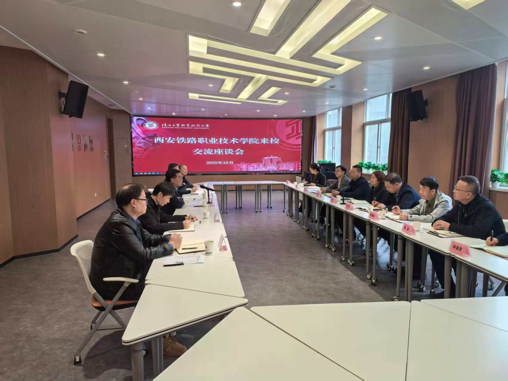 实地参观结束后,双方在崇文楼三楼会议室举行专题座谈。刘永亮校长对陈红院长一行的到访表示热烈欢迎,并系统分享了陕西工业职业技术大学近年来的在“国家双高计划”建设、新校区建设以及职业本科创建等方面取得的成果与宝贵经验。