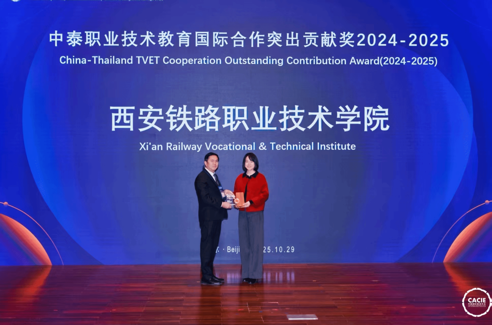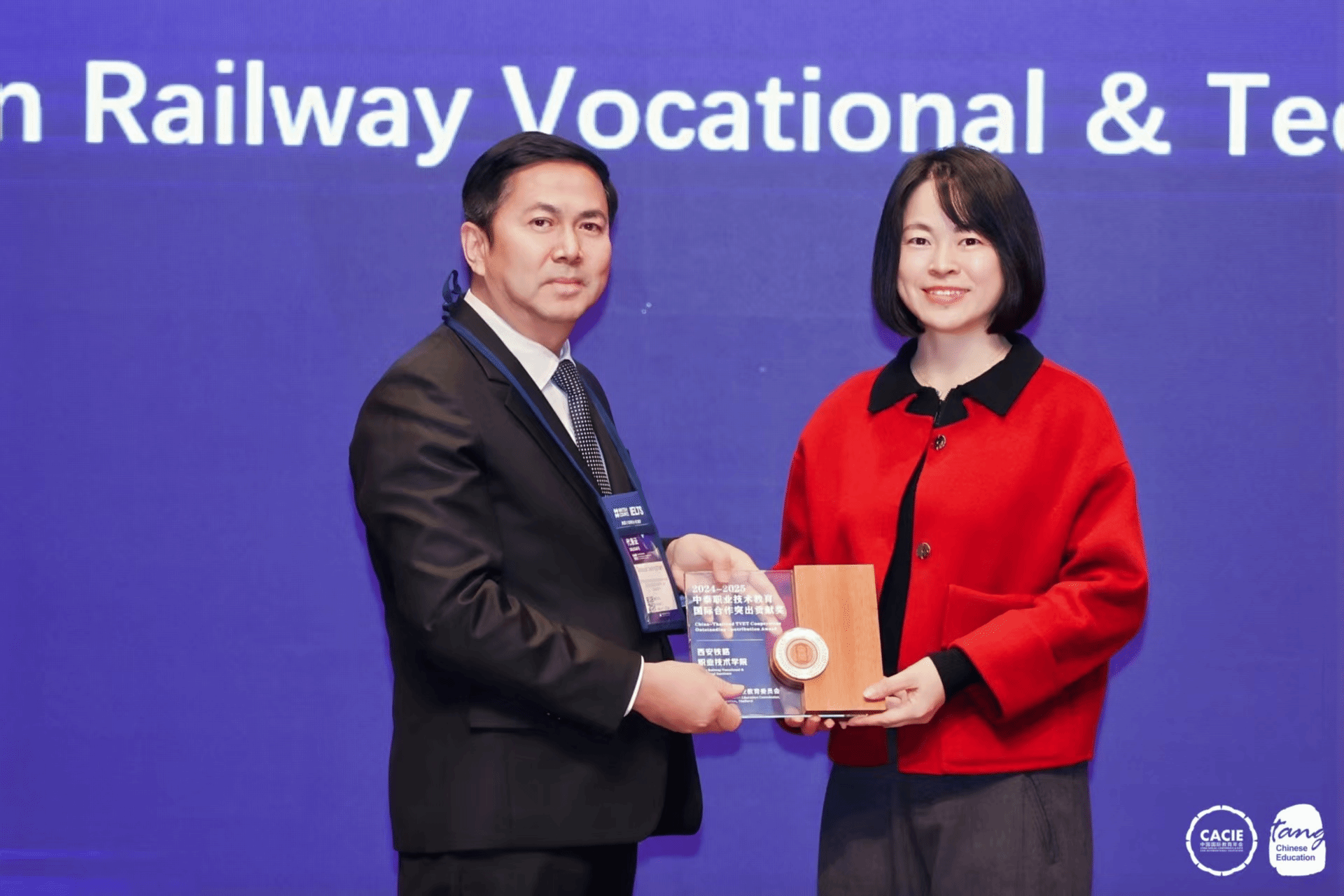 年会重要成果发布环节传来喜讯:张秀红代表学院领取“中泰合作突出贡献奖”。这一荣誉不仅是对我院深耕泰国留学生铁路专业技术人才培养、助力中泰职业教育交流的高度肯定,更充分彰显了我院在职业教育国际化领域的深厚实力与广泛行业影响力。