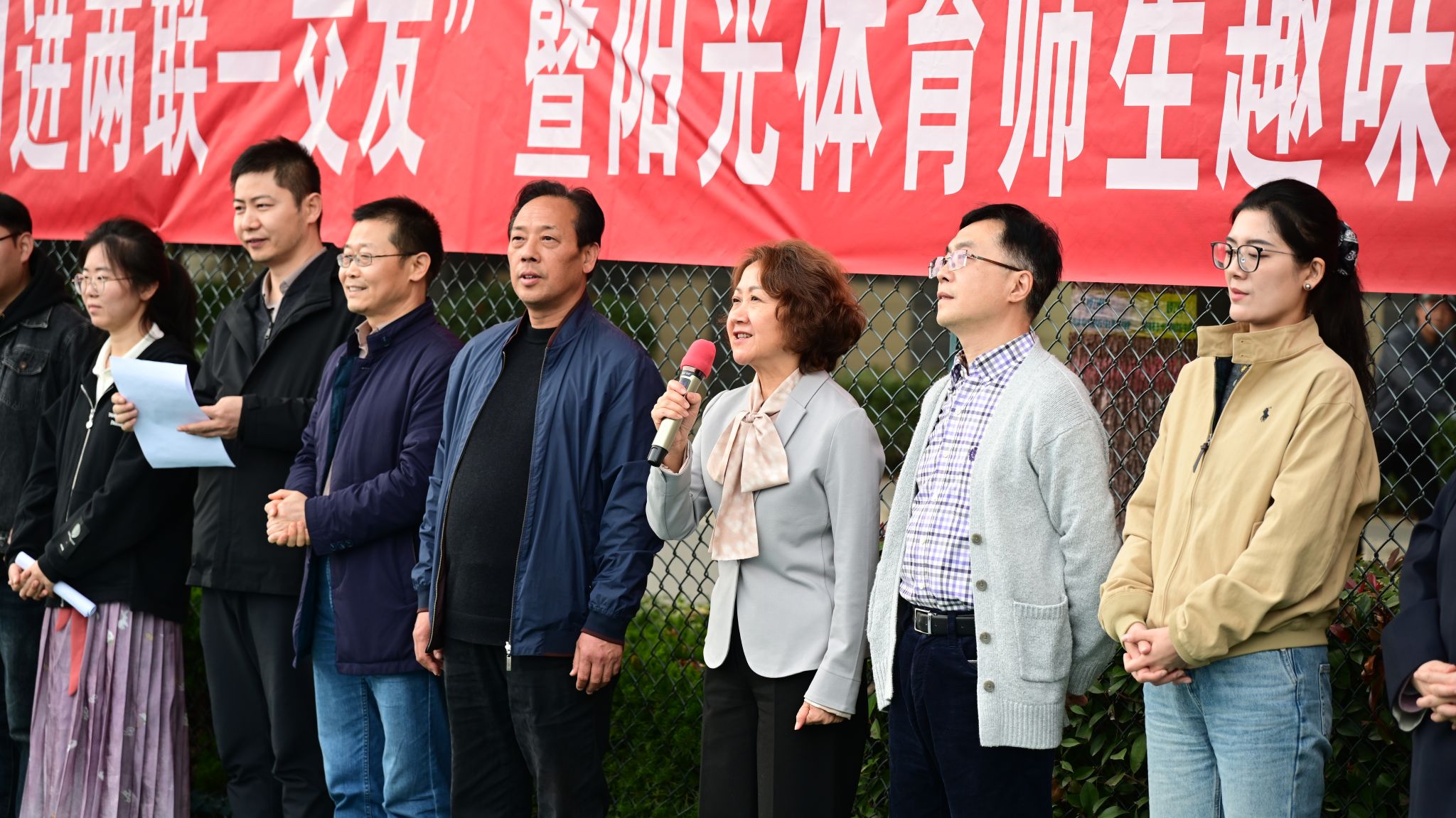 紧接着,张省伟宣读《阳光体育师生趣味运动会活动实施方案》。他讲到,为促使我院学生走出宿舍,走出网络,走向操场,积极参加体育锻炼,我院设置篮球比赛、趣味接力、团体协作等多个项目,既注重竞技性与趣味性的结合,更强调师生间的互动协作。他表示,阳光体育活动是“一站式”学生社区文化建设的重要组成部分,旨在引导师生走出宿舍、走出网络,在运动中释放活力,在协作中增进情谊,营造积极向上、健康文明的校园氛围。最后,陈红宣布本次活动正式开始。