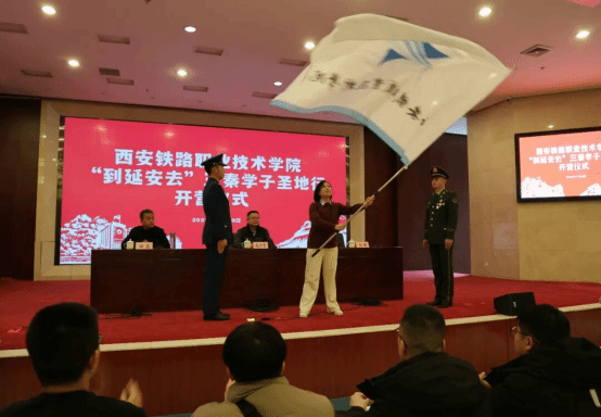师生抵达延安后,开营仪式隆重举行。团委办公室主任田辰向实践团成员介绍了本次活动具体行程,强调了活动安全与纪律要求,解读了学习目标及实践意义;党委学工部副部长马荣为实践团队授旗,号召同学们在红色沃土上感悟初心使命、汲取奋进力量。