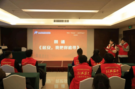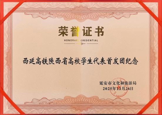 抵达延安后,延安市文旅局相关领导向学院颁发了“西延高铁陕西省高校学生代表首发团”纪念证书。随后,思政教师邢凤霞以《延安精神与青年担当》为题,为学子们深入阐释延安精神的深刻内涵与当代价值,引导学生思考新时代青年如何传承红色基因、勇担时代使命。学生代表深情朗诵《延安,我把你追寻》,用声音传递对这片精神沃土的敬仰与追寻。