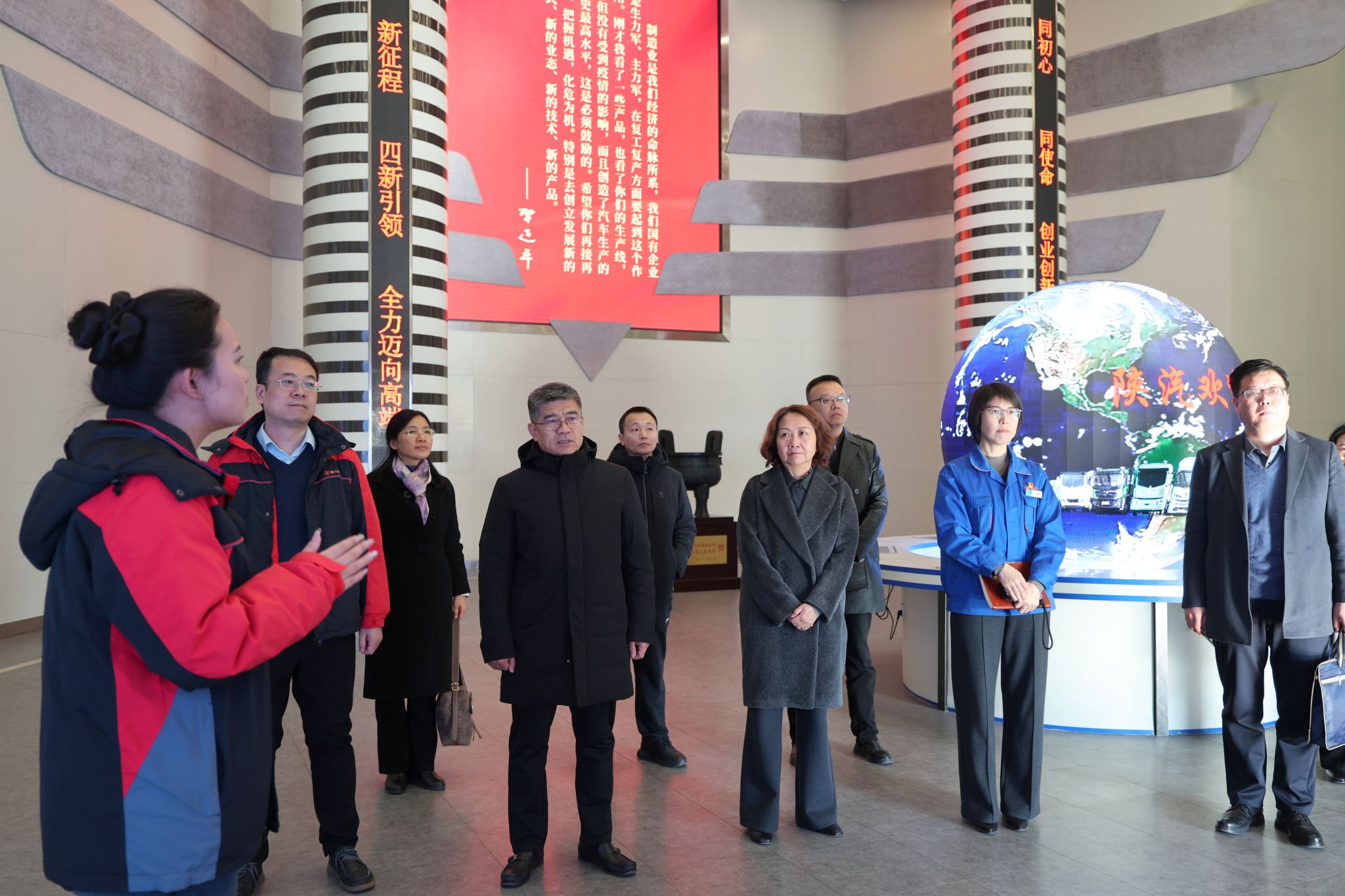 在陕汽控股相关负责人的陪同下,赵春平书记、陈红院长一行实地参观了陕汽展厅、天行健车联网体验中心以及汽车总装配生产线。通过实地考察,深入了解了陕汽控股的发展历程、技术创新成果、智能制造水平及未来产业布局,切身感受了陕汽控股企业在重型商用车领域的雄厚实力与领先地位。