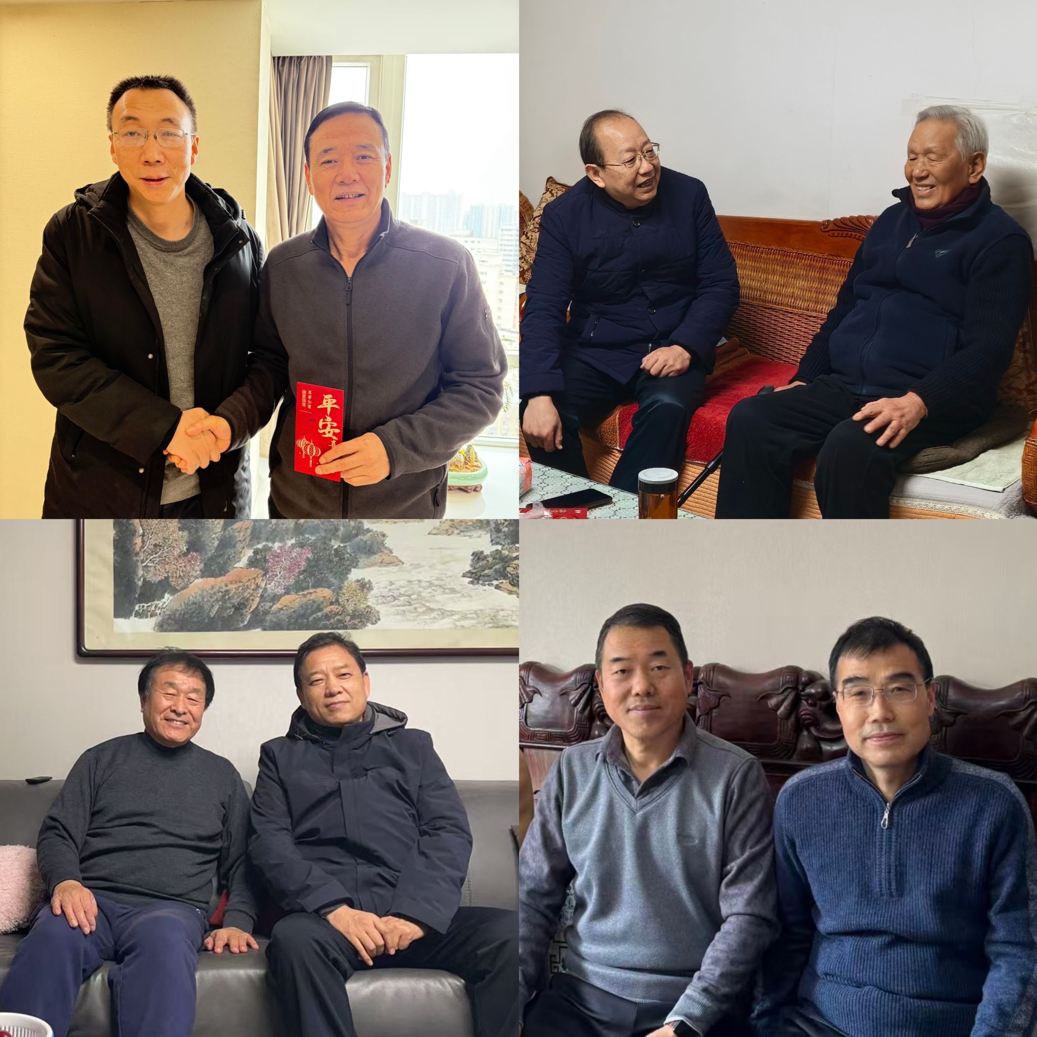 走访中,学院领导与老干部们促膝长谈、亲切交流,仔细询问他们的身体状况、饮食起居和生活需求,耐心倾听他们的心声,并向他们详细介绍了学院过去一年在学科建设、人才培养、科研创新、校园建设等方面取得的显著成绩,感谢他们为学院发展奠定的坚实基础。同时认真听取老干部们对学院未来发展的意见和建议,希望他们保重身体、安享晚年,继续发挥政治优势、经验优势和威望优势,一如既往地关心、支持学院各项事业发展,多提宝贵意见。老干部们对学院的关心关怀表示衷心感谢,对学院近年来的发展成就倍感欣慰和自豪,纷纷表示将始终心系学院,继续为学院高质量发展建言献策、贡献余热。