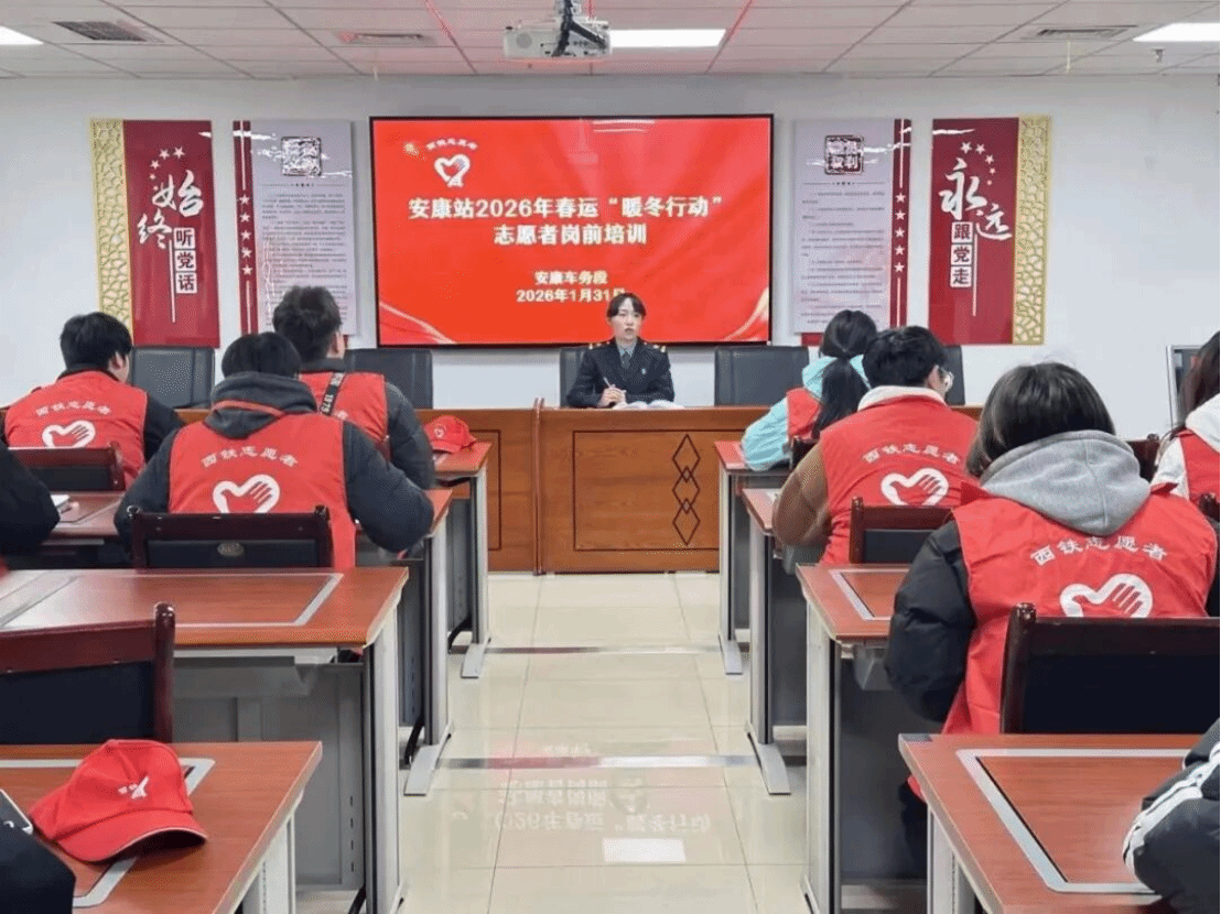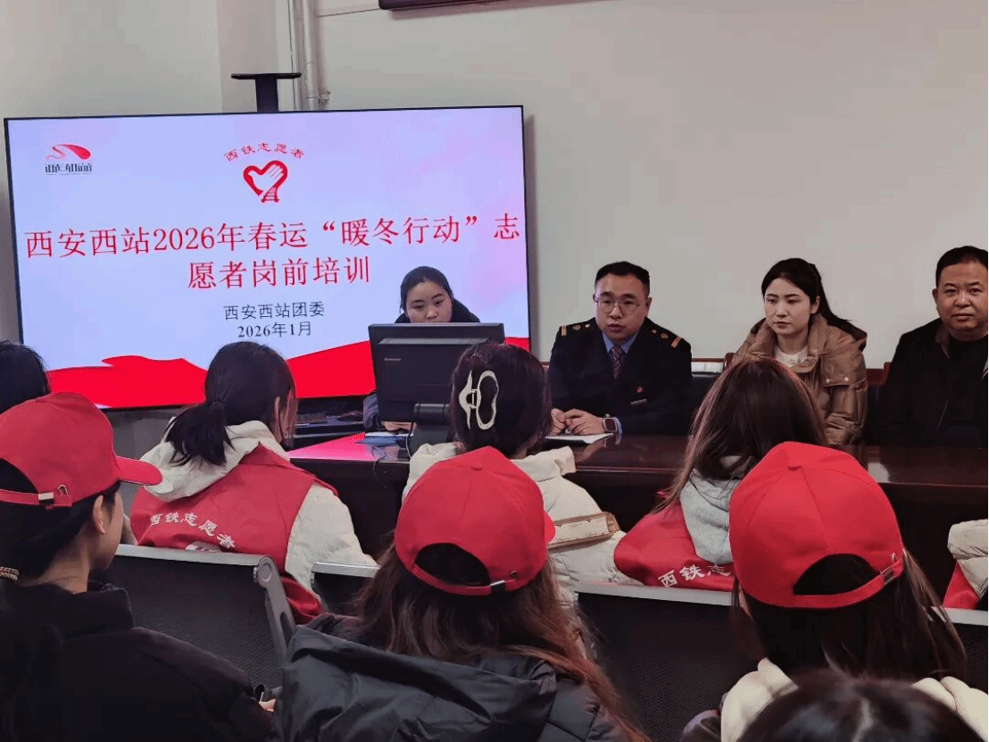 1月31日上午8时,全体志愿者在完成期末考试并经过短暂休整后,准时于各服务车站集结报到,并接受系统岗前培训。学院343名志愿者服务于西安局辖内西安站、西安北站、宝鸡南站、宝鸡站、杨凌南站、汉中站、安康站、渭南北站、延安站、榆林站等十个车站;36名志愿者服务于兰州局辖内兰州站、兰州西站、银川站、庆阳站、天水站、天水南站、武威东站、定西北站等八个车站。2026年春运于今日(2月2日)正式启动,学院志愿者们也已全面进入服务状态。西安局343名志愿者今日起正式上岗,兰州局36名志愿者将于明日投入服务。他们将以专业、热情、细致的服务,正式开启服务2026年铁路春运志愿工作的序幕,在实践中诠释青年担当。