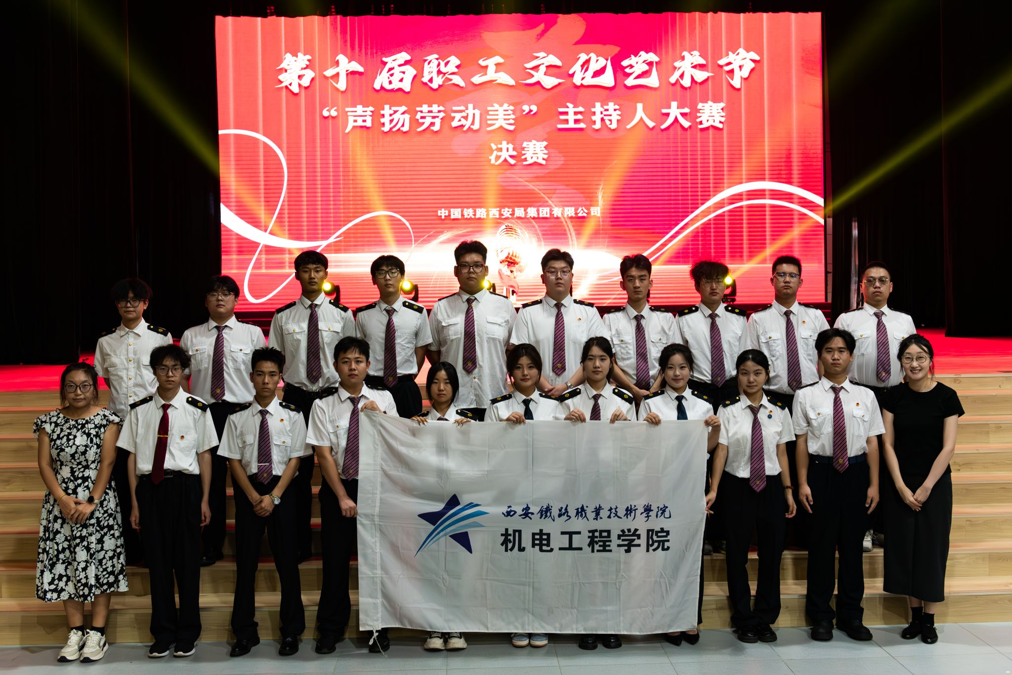 在职业教育深化产教融合、推进“三全育人”的背景下,机电工程学院创新育人模式,7月9日上午,机电工程学院教师朱亚利和马克思主义学院教师单洁带领20余名学生列席中国铁路西安局集团有限公司“声扬劳动美”主持人大赛。