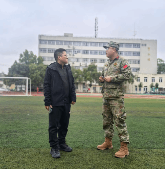 下午训练间隙,值班辅导员老师提前抵达操场,先与负责训练的教官交流,详细了解当日训练进度、学生体能适应情况及需重点关注的学生群体,共同协商调整训练节奏的合理方案。随后,辅导员老师走到学生中间,与学生一对一或小范围谈心,结合军训实际情况叮嘱“科学调整训练强度,避免硬撑”“周末宿舍注意用电安全”“秋日早晚记得添衣保暖”,同时分享大学军训期间的心态调整方法,帮助学生更好应对训练中的挑战。一系列贴合实际的沟通与叮嘱,既为训练有序推进提供保障,也让学生感受到针对性关怀,强化了安全防范与自我调节意识。