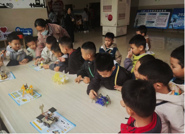 创意小机器人模型展区前孩子们挤成一团:蜘蛛机器人、小火箭车、声控车,还有形态各异的机器模型,瞬间吸引了孩子们的全部注意力。他们蹲身细观、轻轻触摸,接二连三地抛出“它咋动的?”“我能做吗?”等充满童真的问题。志愿者耐心讲解原理,同时鼓励孩子们大胆畅想未来机器人的模样。