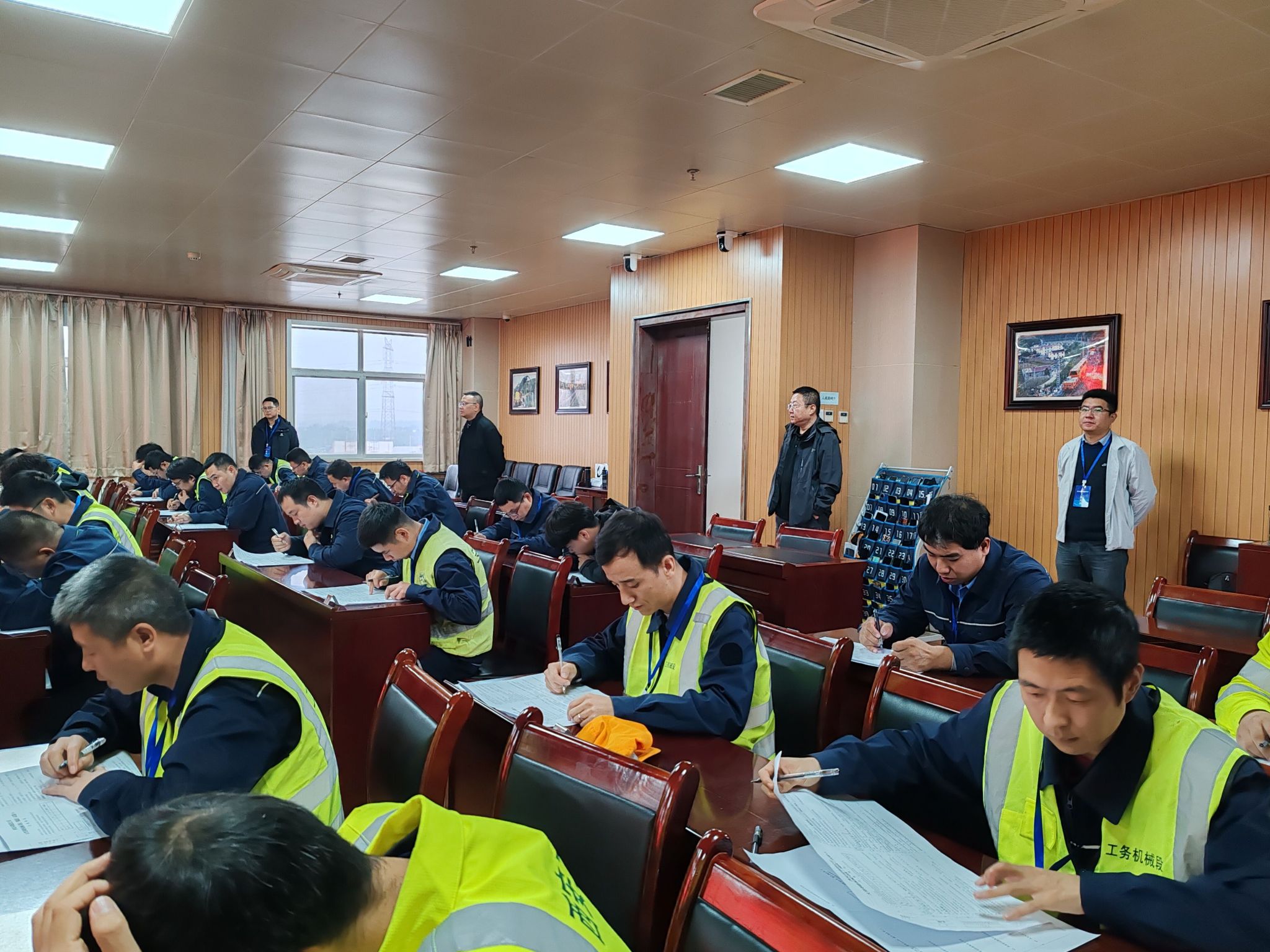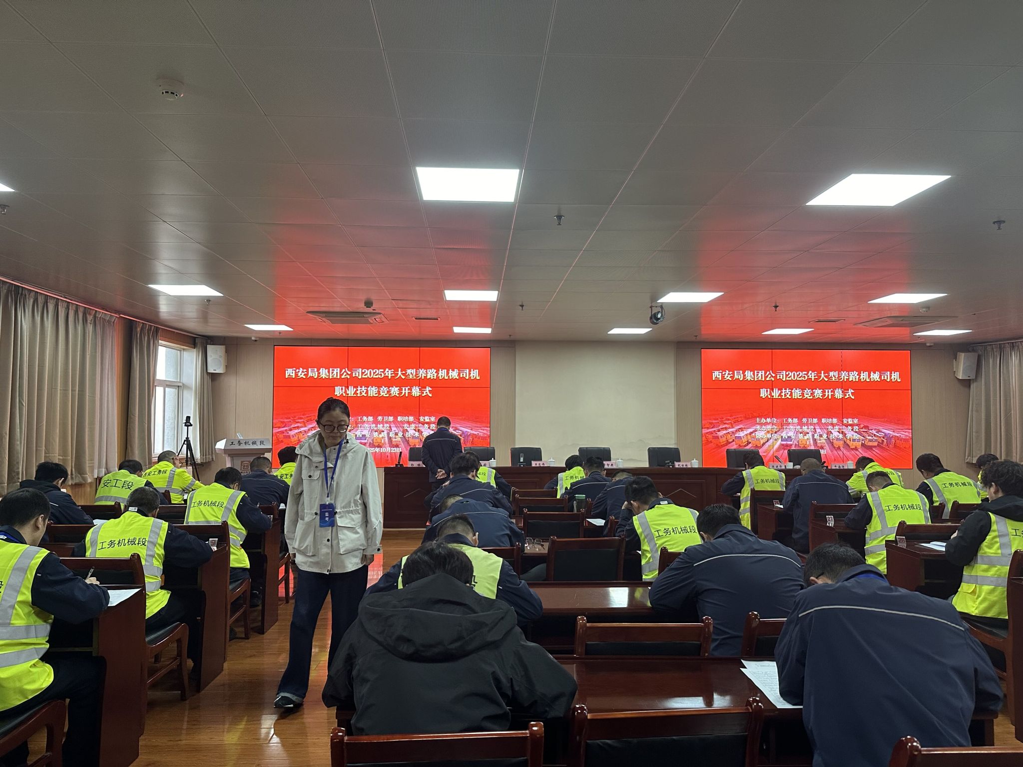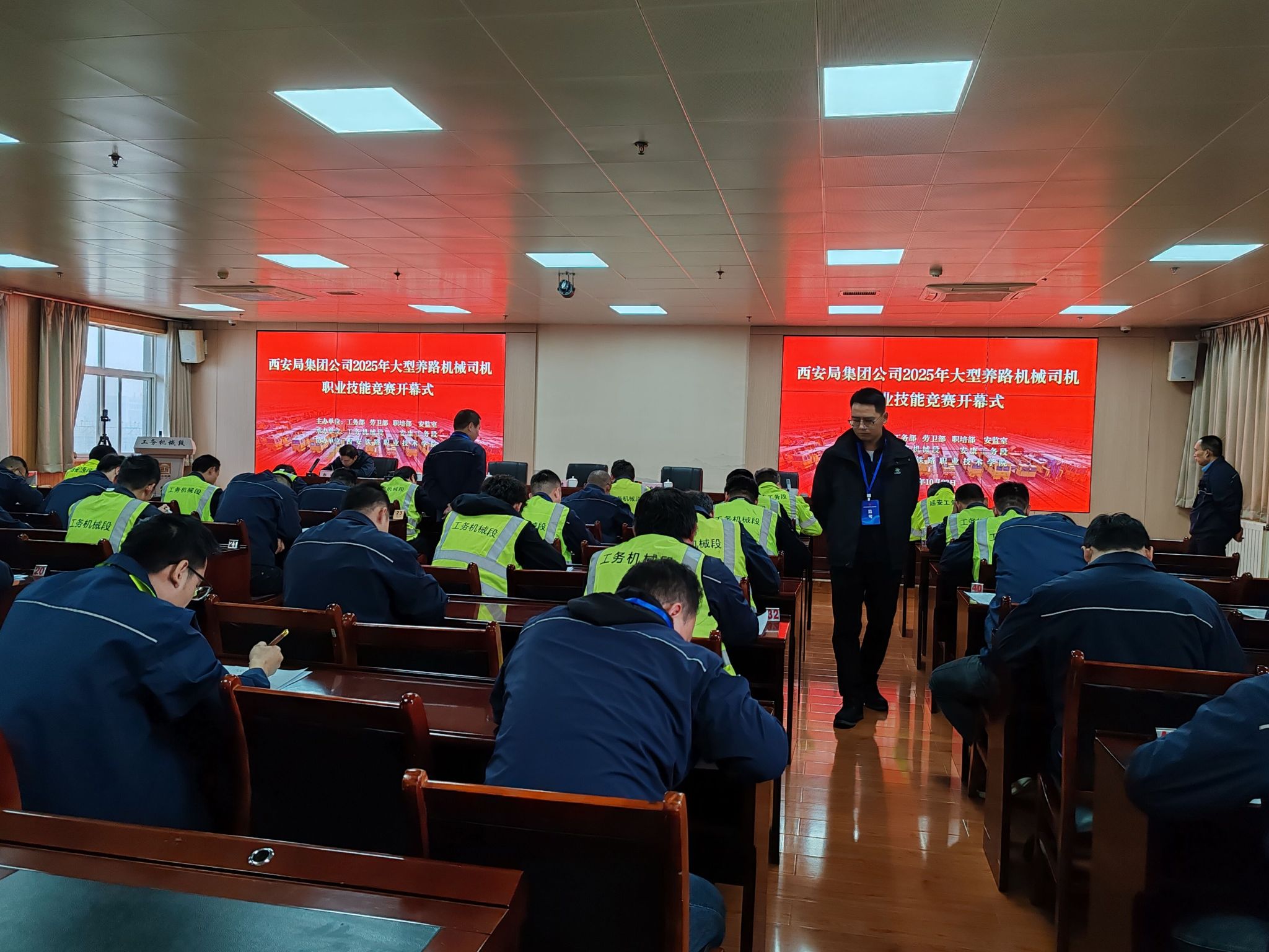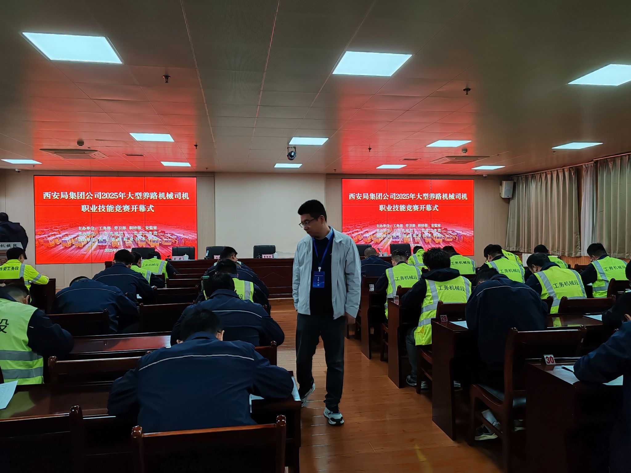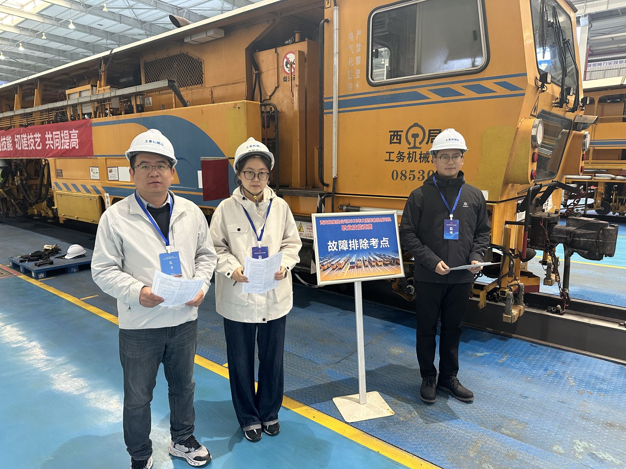 本次大赛以“流程精准、技艺精湛、场景真实”为核心,吸引了全局6个站段的45位选手同台竞技,全面检验并展现了从业人员的设备操作与综合运用能力。本次竞赛分为理论和3个实作项目,实行百分制,其中理论占比30%,实作占比70%(捣固装置检查保养占比30%、收放车作业占比30%、故障排除占比40%)。我院老师担任本次理论考试监考人员。
