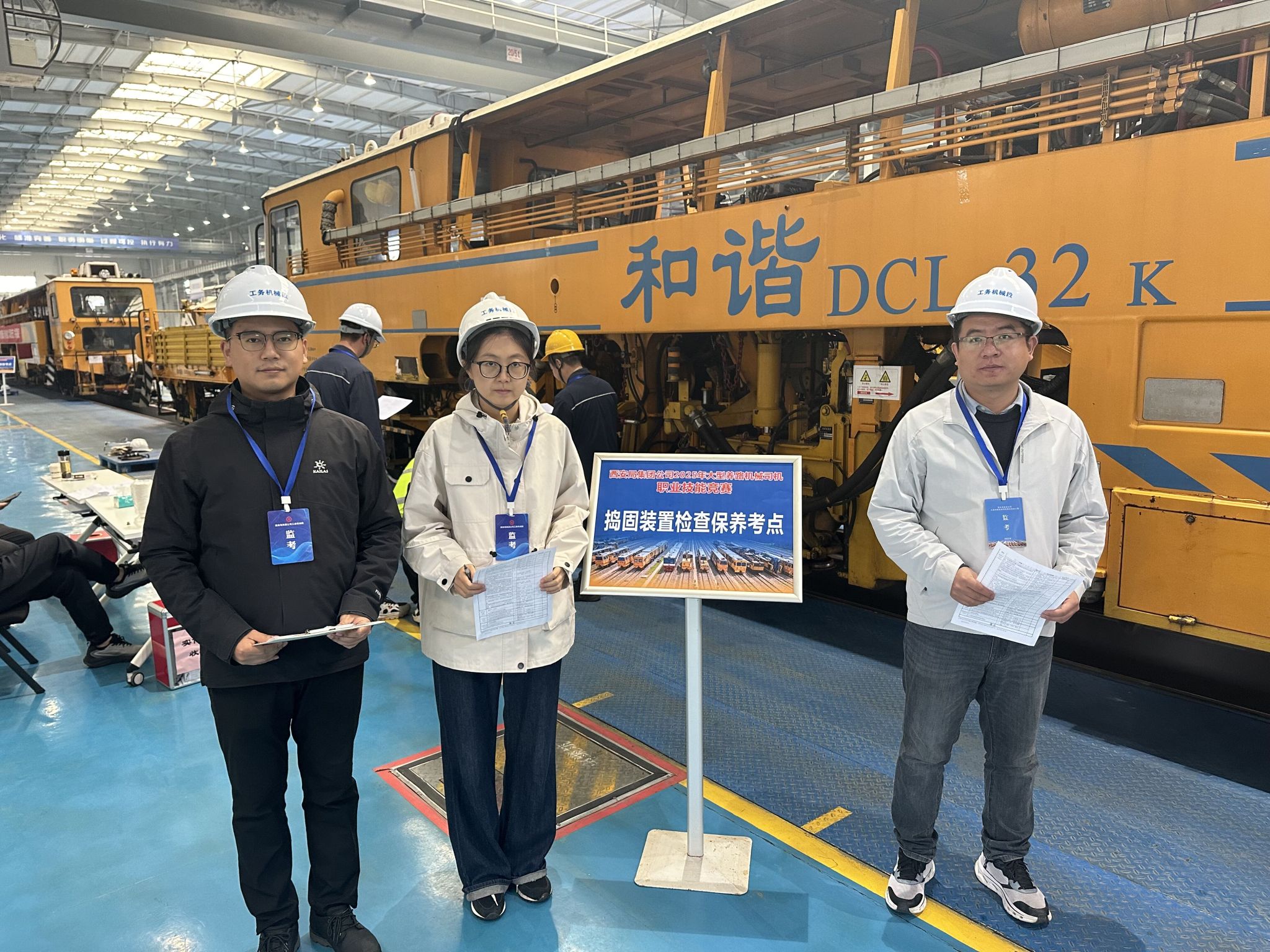 大型养路机械司机技能竞赛实作考核设置了DCL-32捣固装置检修保养、1号位标准化作业及故障排除三项内容,系统考查大型养路机械司机对设备结构、原理与运行状况掌握的综合能力。本次竞赛以弘扬铁路大国工匠精神为核心,通过高水平的技能展示,充分践行了“聚焦现场、崇尚技能、切磋技艺、共同提高”的宗旨,切实将人才培养与作业安全紧密融合,为铁路运输安全保驾护航。