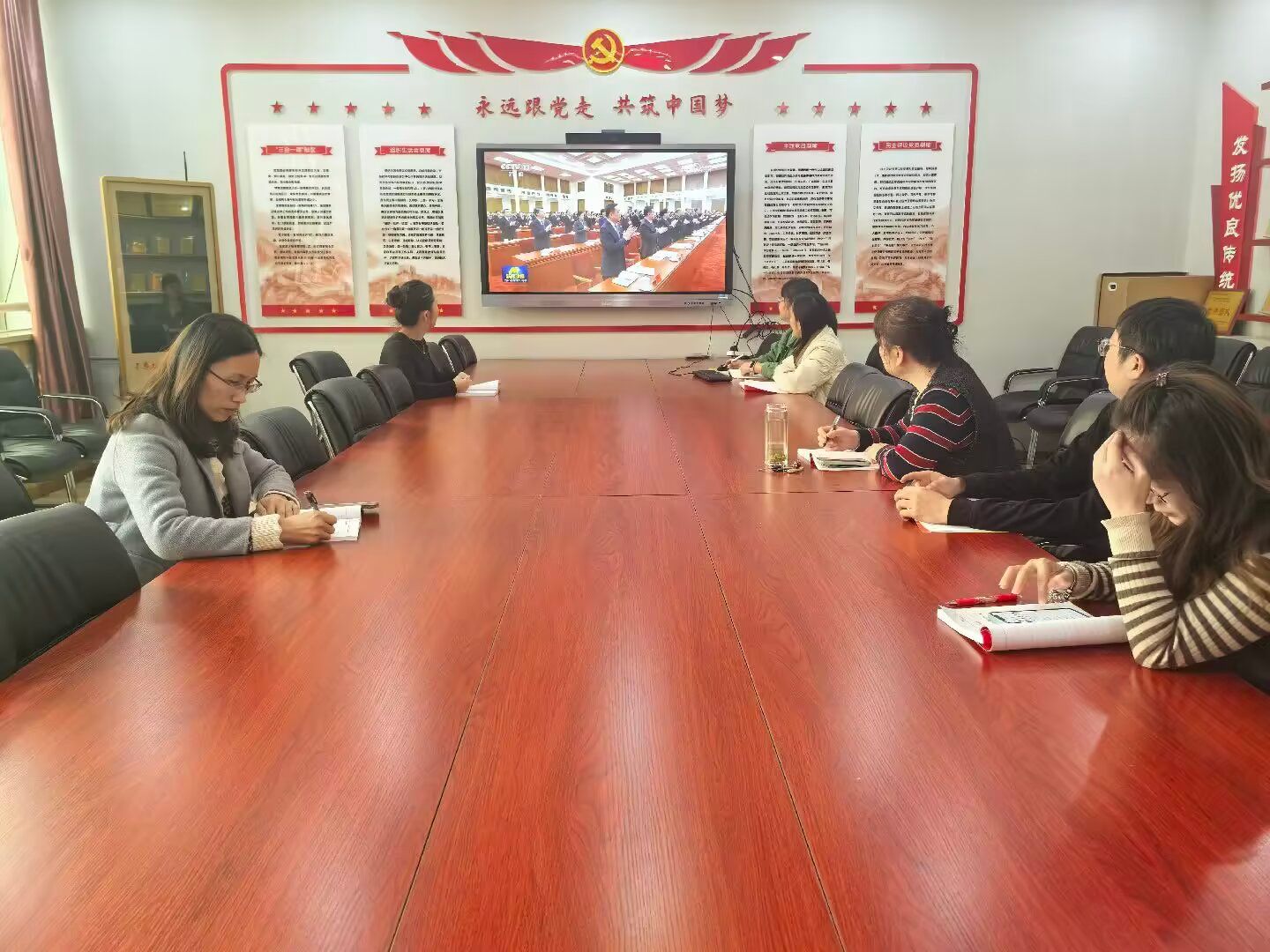 观看视频后,党员们纷纷结合自身岗位分享感悟。电工教研室教师党员表示,将把全会精神融入课堂教学,聚焦铁路电气化领域技术发展趋势,优化实训课程设计;办公室行政党员则表示,将以全会精神为指引,提升服务师生的效率和质量,为学院高质量发展提供保障。