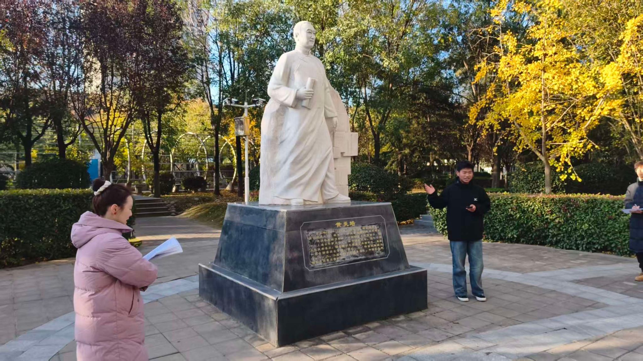 为深化同学们对课程内容的理解,将崇高的理想信念与所学专业紧密结合,2025-2026学年第一学期,赵建英、高瑞佳两位老师组织本班学生,依托校园文化景观开展“大思政课”实践教学。活动通过实地走访、沉浸体验的方式,引导学生感悟先辈事迹,将《思想道德与法治》第二章“理想信念”的理论内容与鲜活实景相融合,打造了一堂立体多样、生动深刻的校内“大思政课”。