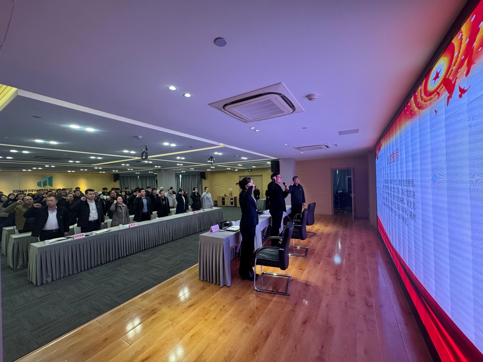 致辞结束后,全体党员同志面向鲜红党旗庄严宣誓,重温入党誓词。铿锵有力的誓言回荡在现场,进一步坚定了双方党员的理想信念,强化了使命担当,凝聚起校企携手共进的思想共识。在全场人员的共同见证下,邢卫红代表马克思主义学院党总支与泾河市政党支部签署了党建共建协议。