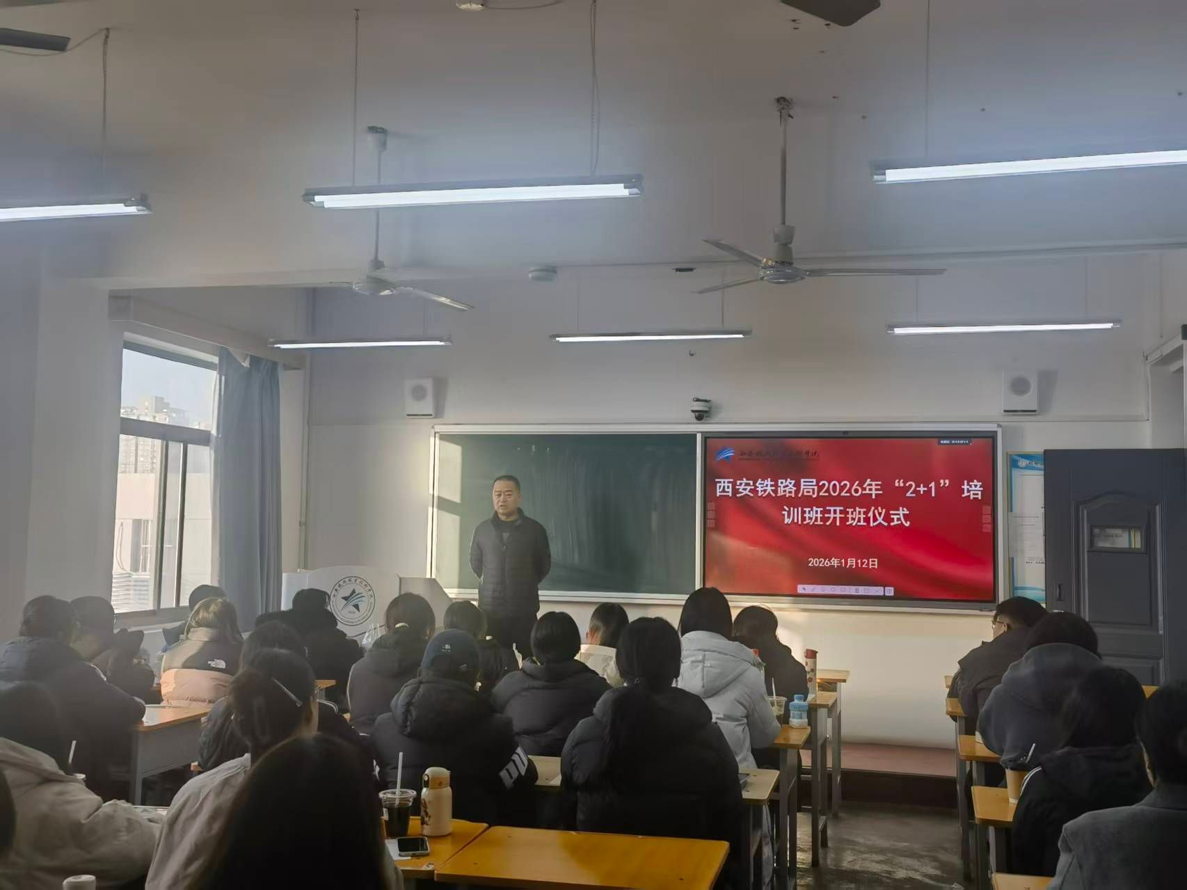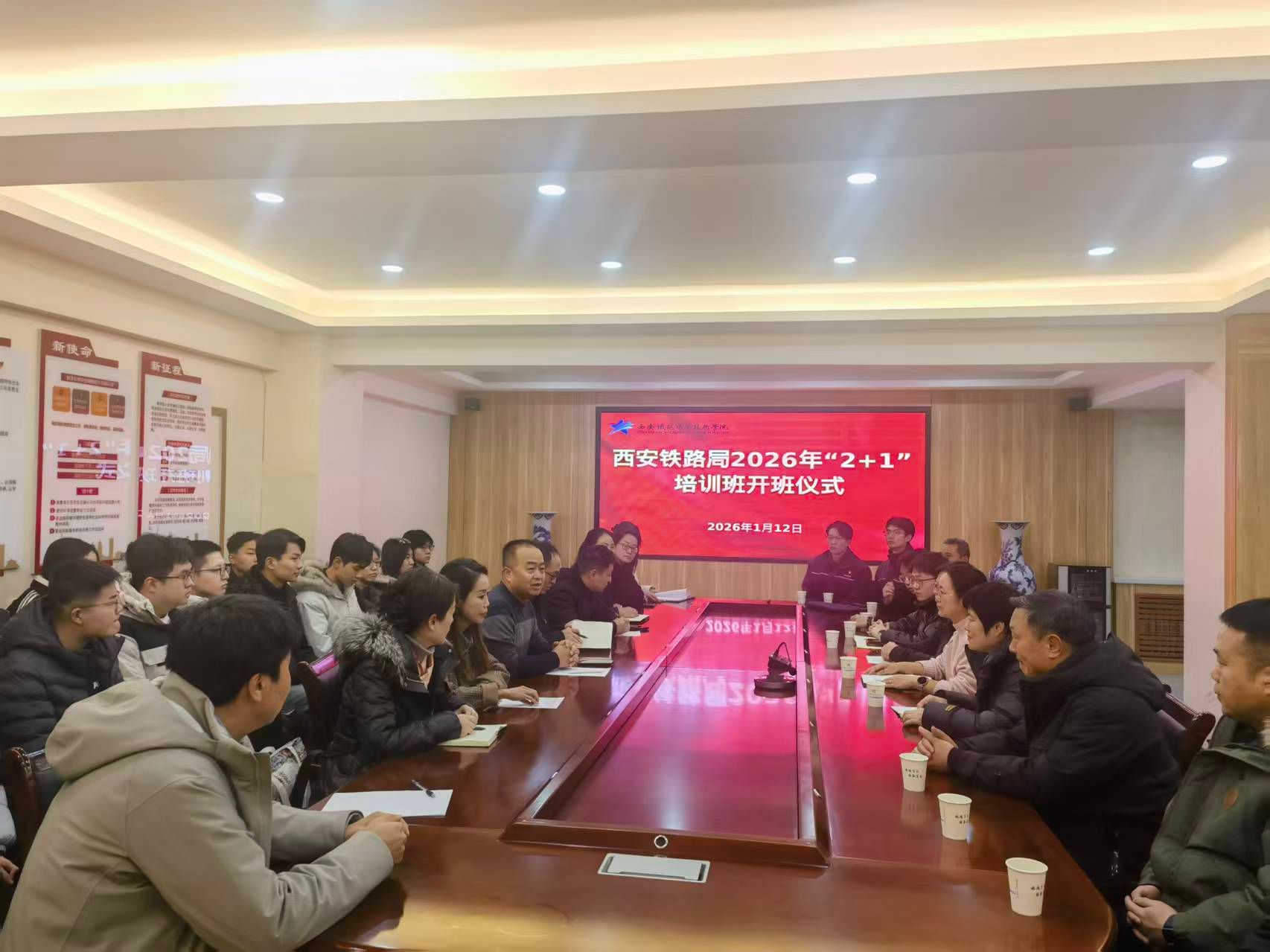 1月12日,根据学校关于对西安局预录取学生开展“2+1”校企联合培养工作的工作安排,交通运输学院在龙首校区6号楼第一会议室会议室召开西安铁路局2026届校企联合培养“2+1”培训班开班仪式。中国铁路西安局集团有限公司西安物流中心人力资源部部长高珊、交通运输学院院长王公强、副院长刘广武、物流教研室主任贾苏绒、学工办主任梁磊、院办副主任聂晶晶、运输教研室副主任牛天河、西安局相关工种培训教师代表、培训管理老师和全体参训学员共同参加本次开班仪式,仪式由刘广武主持。