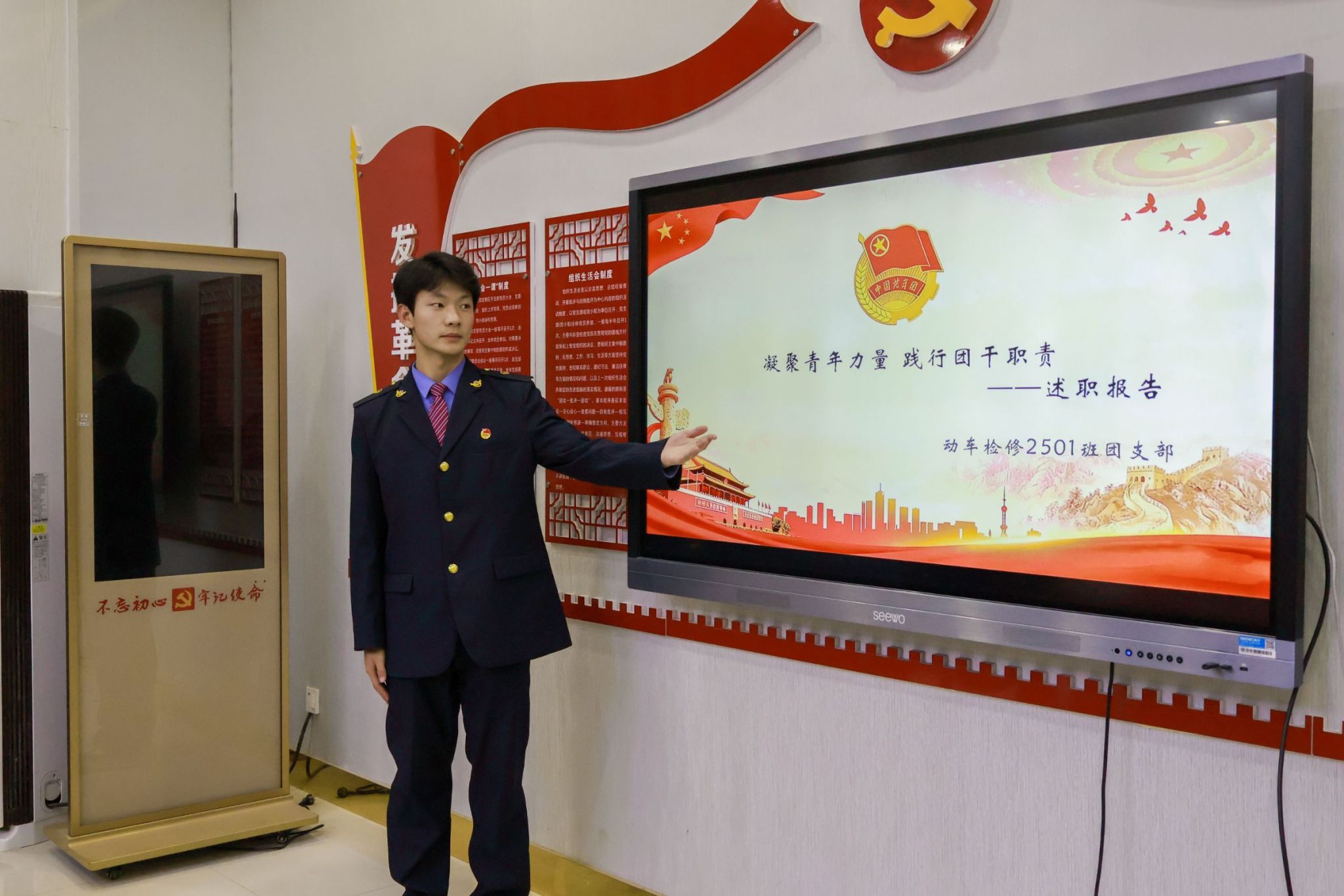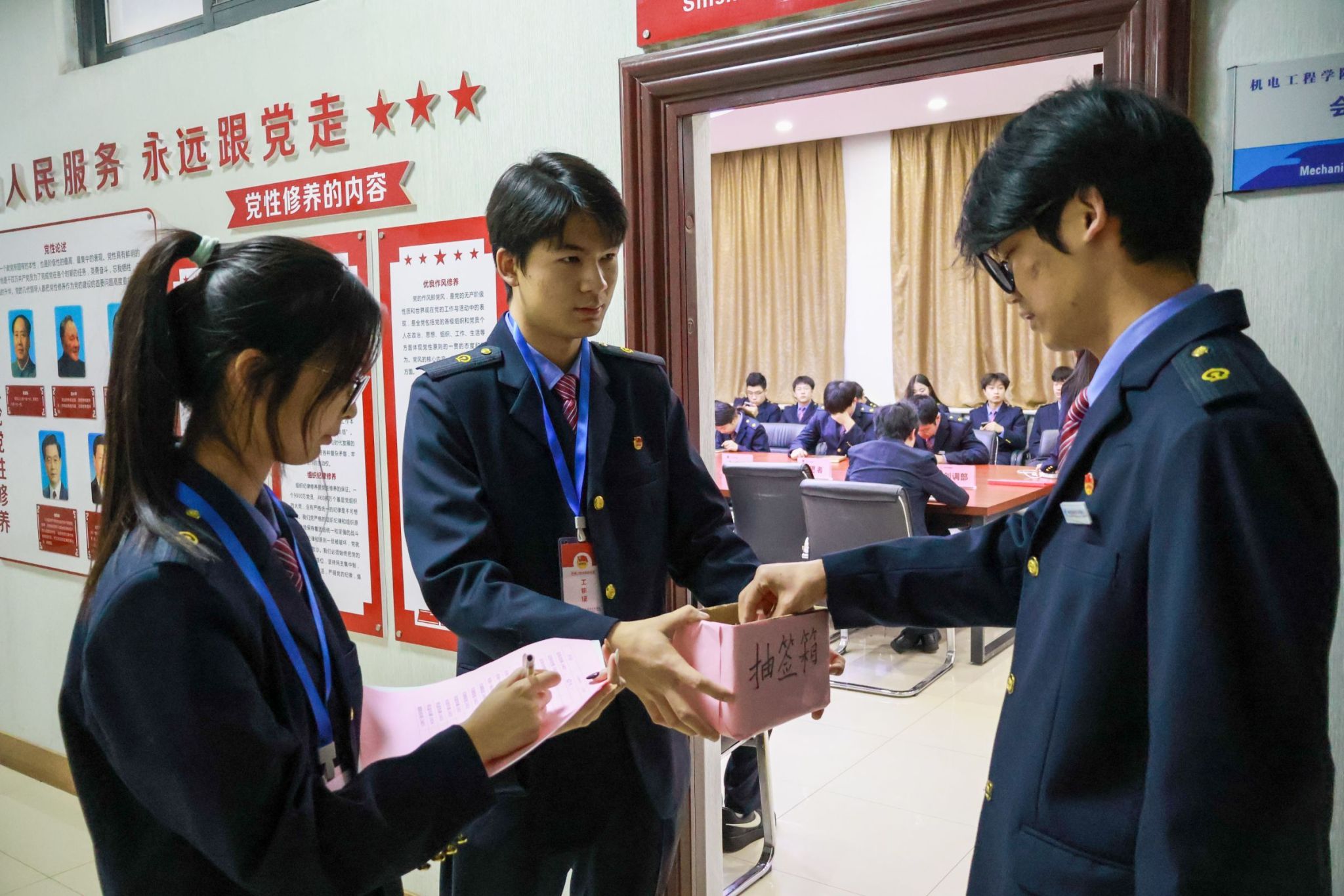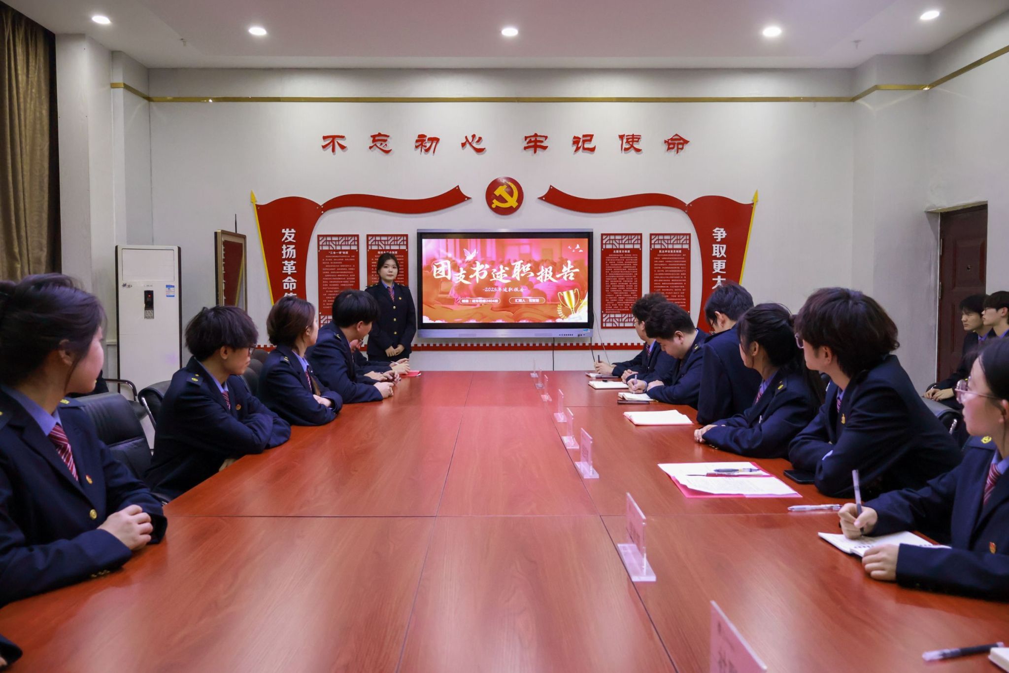 会议在庄严的《共青团团歌》中拉开序幕,激昂的旋律凝聚了全体团干部的奋进力量。会前,通过现场抽签确定了各支部书记的述职顺序,确保了大会流程的严谨有序。