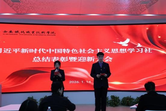 学员代表方鑫荣首先作2025 年度工作总结,从理论学习和实践活动两方面回顾了全年工作。本年度,“新时代学习社 ”组织师生前往陕西水利博物馆、宝鸡秦岭站、陕西铁路陈列馆等地开展实践学习,学员也在各类比赛中表现突出,分别在市高校大学生讲思政课比赛、全国大学生红色全景资源创意展示大赛、省职业院校“法律事务 ”技能大赛中取得佳绩。