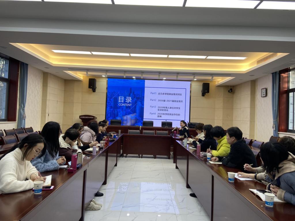 曾小莉首先从近几年学院就业情况对比、2020-2021届学生就业情况、2020年用人单位对学生需求的变化及2020年学院就业工作存在的困难四个方面进行了汇报。主要针对我院当前就业形势进行了深入的分析研讨,为就业指导课程教学工作指出方向,也为授课教师提供了相关的详实资料和明确的思路。