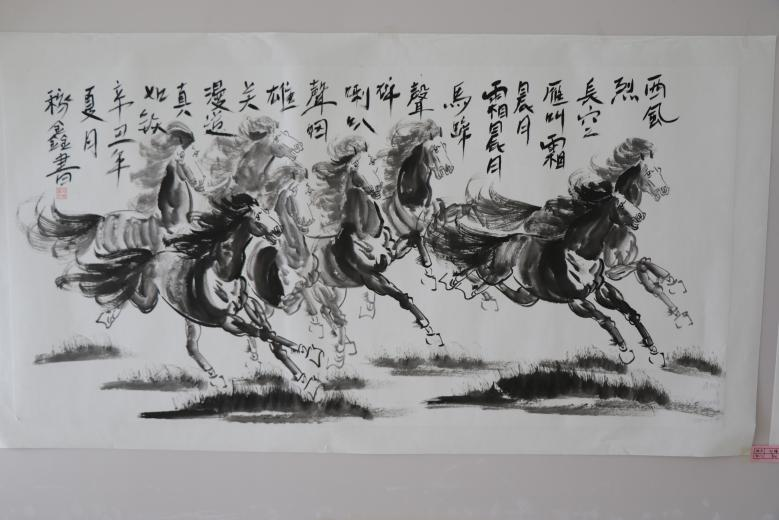 这次书画摄影作品展活动,展览的作品涉及的题材丰富、形式多样、风格鲜明,作品包罗万象,有方正规矩的正楷、飘逸清秀的行书、妩媚多姿的隶书、刚劲有力的篆书,工艺作品有剪纸、摄影等,从美术作品看,有气势宏大的延安宝塔山远景山水,有写实的盛世牡丹花,有奔腾飞扬的骏马图,有祝福祖国的繁花似锦等作品。