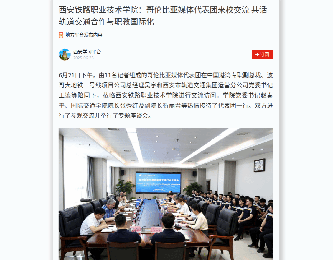 西安铁路职业技术学院:哥伦比亚媒体代表团来校交流 共话轨道交通合作与职教国际化