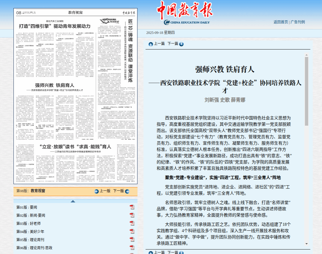强师兴教 铁肩育人 ——西安铁路职业技术学院“党建+校企”协同培养铁路人
