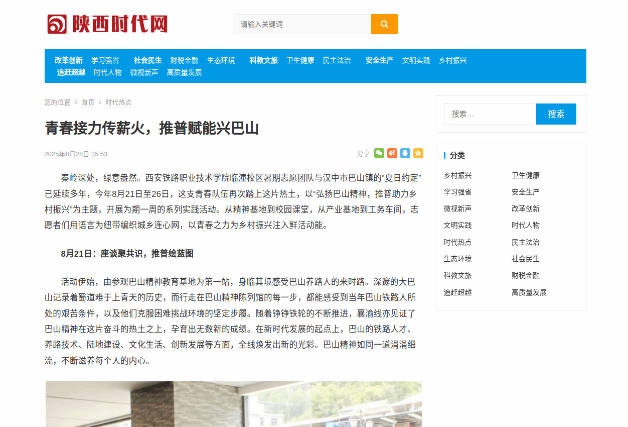 青春接力传薪火,推普赋能兴巴山。西安铁路职业技术学院临潼校区暑期志愿团队在汉中市巴山镇以“弘扬巴山精神,推普助力乡村振兴”为主题,开展为期一周的系列实践活动。
