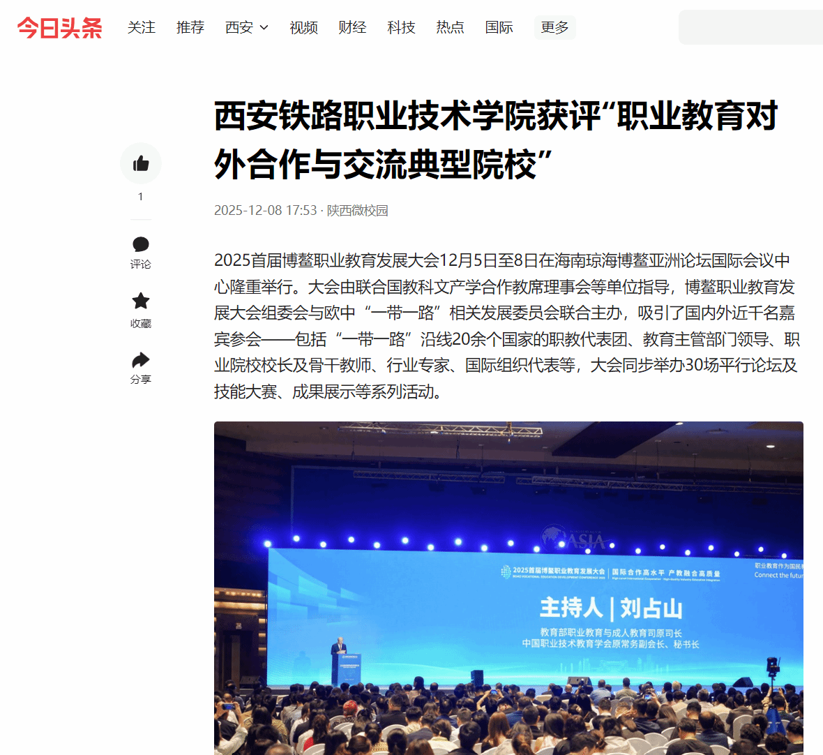 西安铁路职业技术学院获评“职业教育对外合作与交流典型院校”
