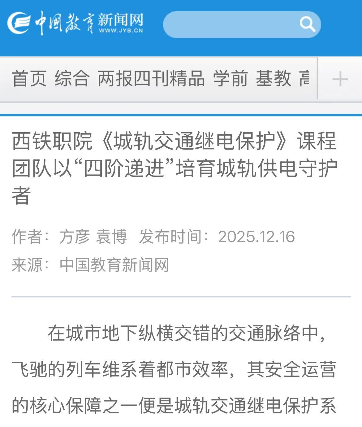 西铁职院《城轨交通继电保护》课程团队以“四阶递进”培育城轨供电守护者